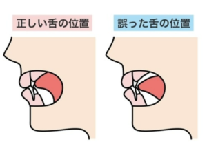 本来、安静時には舌は上顎に軽く触れ、唇は閉じた状態が理想とされています。しかし口呼吸が習慣化すると、舌が下がり、口が常に開いた状態になりやすくなります。この状態が続くことで、上顎の成長が十分に促されず、歯が並ぶスペースが不足してしまうことがあります。