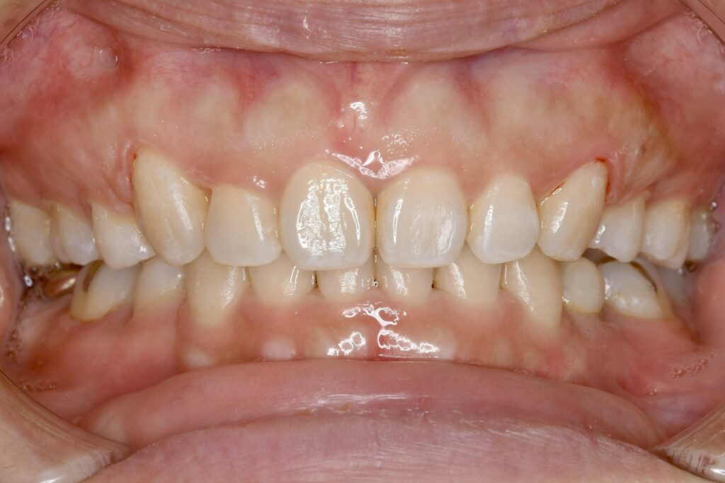 | 治療内容 | 上下とも歯を2本抜いて、上の前歯を後方に引きながら、でこぼこを治しました。 |