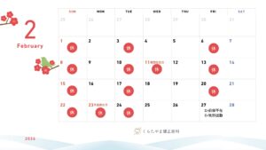 新年あけましておめでとうございます! 2026年もくらたやま矯正歯科をどうぞよろしくお願い致します。 2月の診療日についてご連絡致します。 2/11(水)と2/23(月)は祝日のためお休みをいただきます。ご迷惑をおかけ致しますがよろしくお願い致します。 …続きを読む